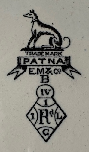 | "Trentham" Design registered on 17 June 1874, Parcel 7, Number 283041, by Edge, Malkin & Co. of Burslem. Marks: printed registration diamond with title above and maker's initials "E.M.&Co. / B" beneath Illustrations: Henrywood BJ/456 |