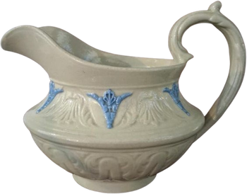 Only three moulded jugs and small creamers from teasets have yet been recorded, all apparently dating from the earlier William Hackwood period, although one has a later Cockson & Harding mark. The firm used a numbering system for transfer-printed patterns and two of the jugs and the creamers also bear design numbers, presumably from a different sequence since No.22 and No.26 are known for both jugs and printed patterns. The design number sometimes appears in a moulded scroll mark, almost certainly inspired by a very similar Minton mark, to the extent of an initial beneath the scroll, with H for Hackwood replacing the cursive M for Minton.