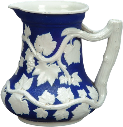 | Barrel with Grapevine A very similar jug without the sprigging and with a different handle was made by William Ridgway, Son & Co. Numbers: 159 Illustrations: none |