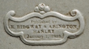 The following designs are found with the impressed 1835 publication mark of William Ridgway & Co. but they are all later jugs, the mark being used on designs into the 20th century. Later versions of the mark have "ENGLAND" in place of "HANLEY".