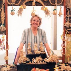 Audrey Rolfe, from Bridport, runs Corn-utopia with her husband, David. She is a member of the Guild of Straw Craftsmen and has been making corn dollies since 1972. As well as the traditional shapes, Audrey makes jewellery, dolls’ house miniatures and has won prizes for stunning show pieces. | Autumn craft theme: Corn Dollies |