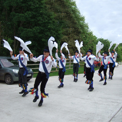 Based in Exeter, Great Western Morris started in the late 1960s. Their dances are mostly based on styles Sharp collected from Leafield and Bampton in the Cotswolds. Historically, morris dancing was important as a source of income in hard agricultural times, so GW put on a show of performance morris – dancing with character, audience contact and high entertainment – while having fun, beer, and collecting money. | Great Western performed a variety of Morris dances with sticks and handkerchiefs to an enthusiastic crowd outside the Brewery entrance. They liked the beer! | |