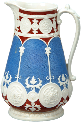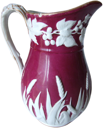 The earlier partnership appears to have made only two relief-moulded jugs, but the later Ashworth firm made several, often titled, and three of their jugs were registered designs. When coloured, the Ashworth jugs often bear painted pattern numbers.