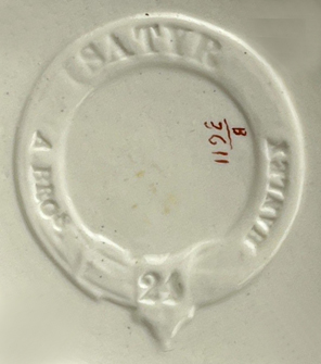 | Arches and Medallions (not titled) Registered on 21 September 1867, Parcel 1, Number 211536, by Geo. L. Ashworth & Bros. of Hanley. Marks: moulded registration diamond and impressed "ASHWORTH". Pattern numbers noted include 9918. Illustrations: Henrywood RMJ/189; Hughes 2/182 |
